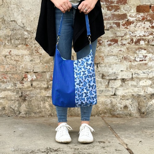 Tenhle střih slaví největší úspěchy a já se vůbec nedivím - snadné šití, možnost si upravit délku popruhu podle sebe nebo popruhy měnit podle nálady, a ještě možnost ušít kabelku dvoubarevnou