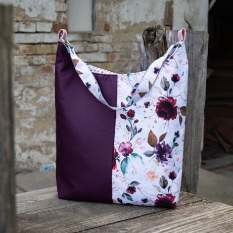 prostornější kabelka se hodí, pokud sebou nosíš hodně věcí 🙂 (pojme menší počítač, A4 nebo termosku s kafem), dobře se šije i začátečníkům a na kapsách se můžeš kreativně vyřádit