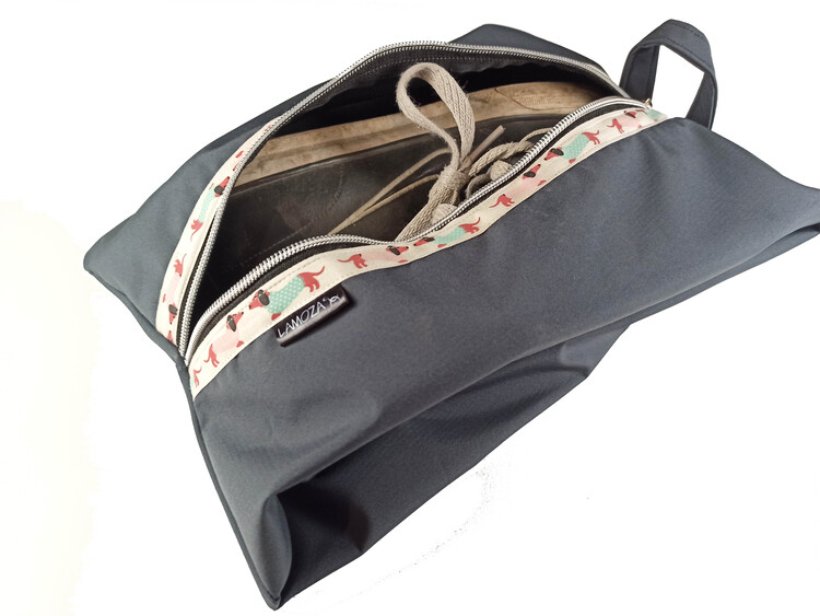 Všestranné využitíNa zablácené boty na chalupu značka ideál. Můžeš ušít manželovi na tenisky na volejbal, sobě na balerínky nebo společenské boty, papuče apod. Obal však nemusí sloužit jen jako obal na boty, zorganizuješ si do něj cokoliv, co potřebuješ převézt, uložit... od svačinek, přes plavky po cvičební pomůcky.
