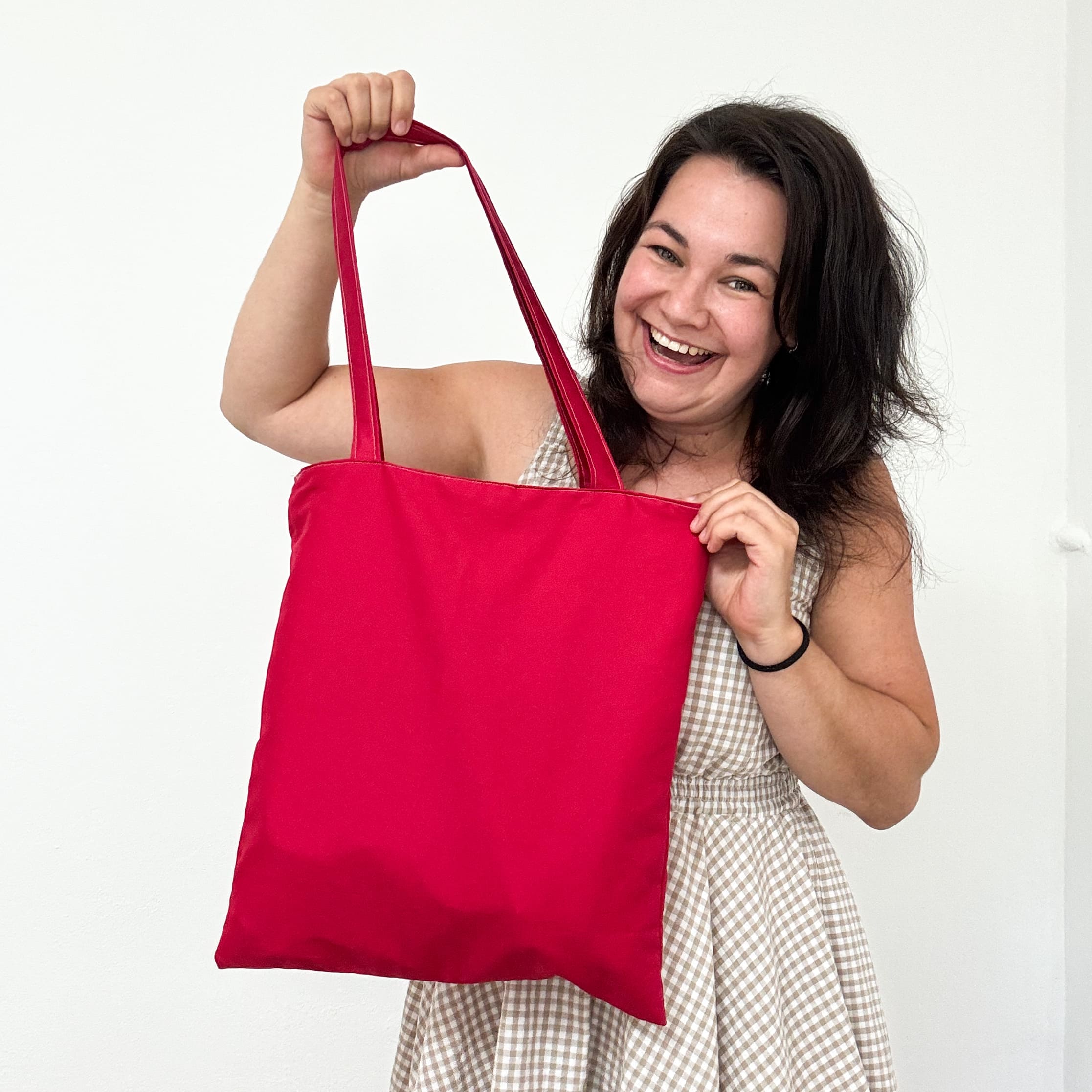 Oboustranná nákupní taška je ideální pro první dotek se strojem – jednoduchý tvar, přehledný postup, jasné vedení krok za krokem.
