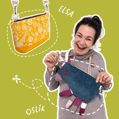 Střih s 2 videonávody na zábavné šití roztomilého Oslíka a také upravenou variantu střihu na klasickou kabelku Elsa. Oslík nabízí prostor pro společně strávený čas s dětmi nad jejich novou kabelkou, kombinování látek a barev.