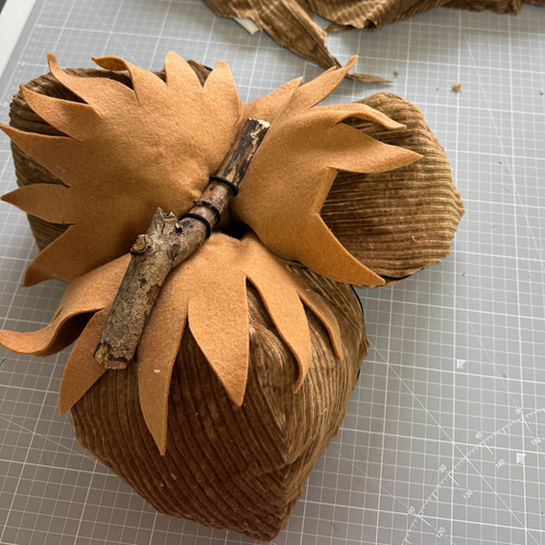 Vzala jsem staré manšestráky, nastříhala z nich oříšky a pak už jen stačilo přidat suchý zip, kousek filcu a větévku z lesa.
