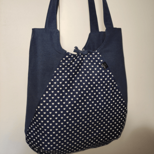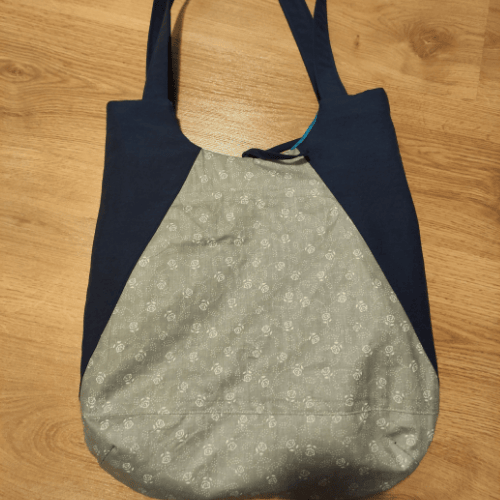 Dvě dlouhá ucha,k nošení přes rameno, Ucha si pošijeme látkou a kabelku budeš moct přetáčet z rubu na líc podle libosti.